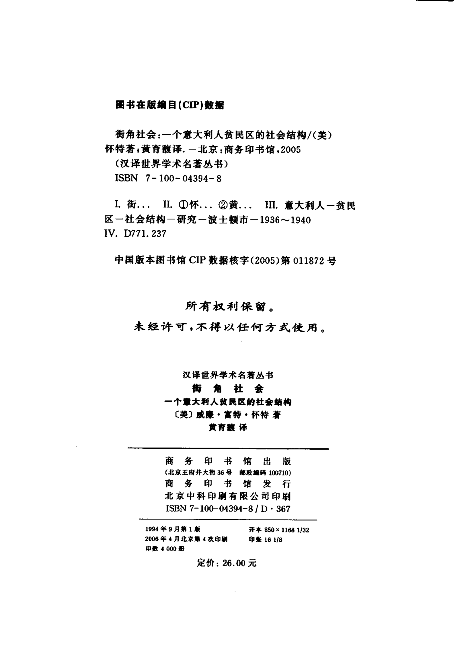 享受阅读的快乐:翻开《街角社会》,就像推开了一扇通往另一个世界的大门。在那里,你将与形形色色的人物相遇,体验他们的悲欢离合,感受社会的脉动与变迁。这是一次心灵的旅行,也是一次智慧的启迪。