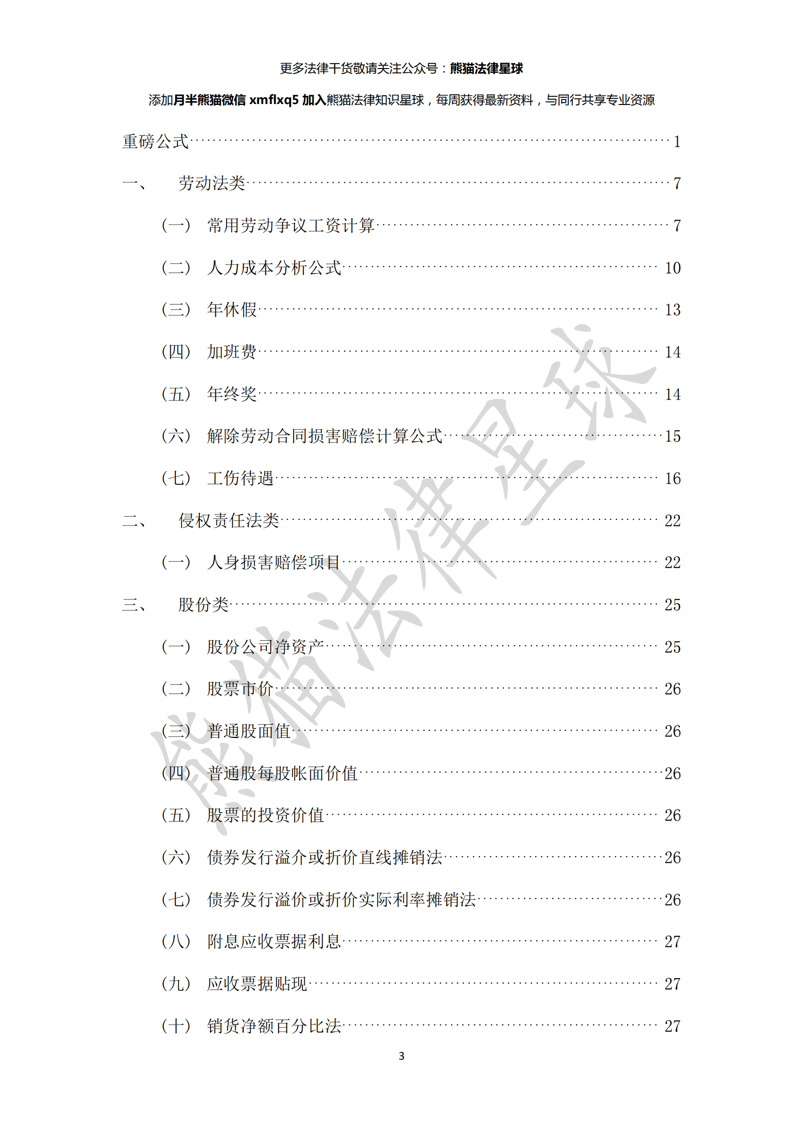 在法律征途上,每一位从业者都渴望拥有更高效、更精准的武器。《法律人必备17类常用公式》正是这样一份宝藏资料,它不仅仅是一份公式合集,更是法律实务操作的智慧锦囊。从劳动法争议的工资计算到股份估值,从侵权责任的人身损害赔偿到复杂的税法计算,17大类、数百个核心公式覆盖了法律工作的方方面面。