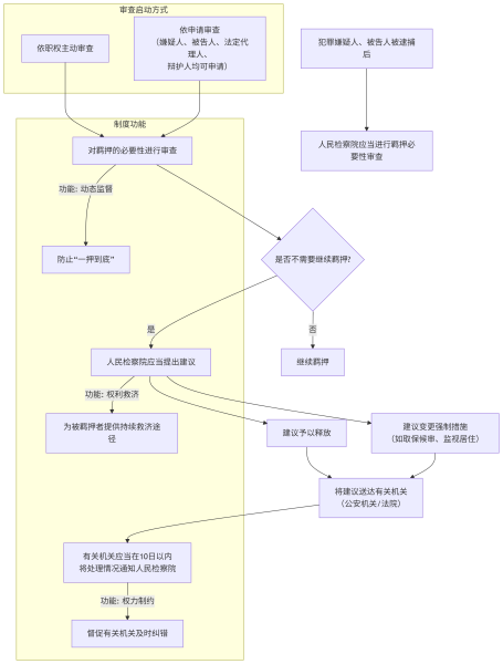 人民检察院在逮捕后启动羁押必要性审查的两种方式、审查后的处理结果以及有关机关必须履行的反馈义务,形成了一个完整的监督闭环