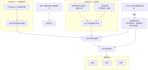 刑事附带民事诉讼中财产保全的两种启动方式、核心目的及所遵循的法律规则体系